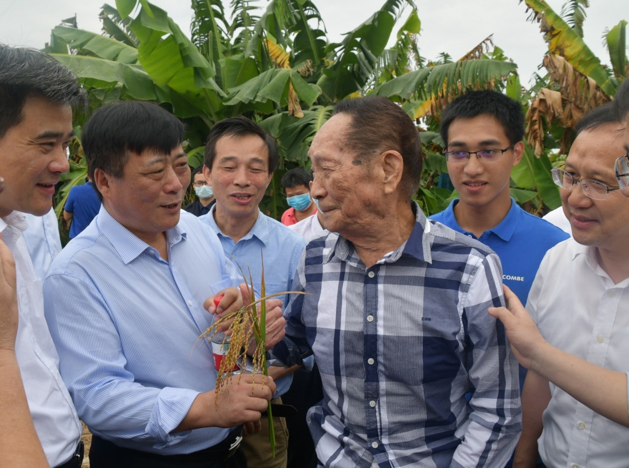 近日,国家耐盐碱水稻技术创新中心在海南三亚崖州组织召开了试验现场观摩及建设推进会,我校两个耐盐碱杂交水稻新品种因表现优异获袁隆平院士点赞和相关专家好评。袁院士对我校国家耐盐碱水稻技术创新中心华南分中心(湛江)建设和海水稻研发情况高度认可,表示十分愿意推动我校袁隆平院士海水稻创新团队建设,共同推进海水稻耐盐碱基因与三代杂交稻技术融合,实现中国海水稻技术新突破。