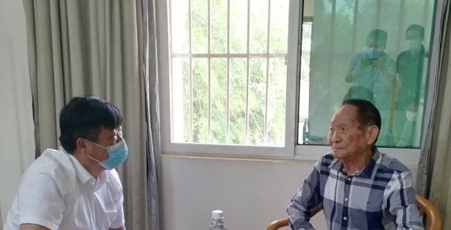 陈进军转达了学校党委书记曹俊明、校长潘新祥对袁隆平院士的问候和邀请袁院士在今年内莅临湛江指导的愿望,并汇报了我校负责的国家耐盐碱水稻技术创新中心华南分中心(湛江)建设进展和海水稻研发情况。听到湛江、江门基地海水稻试种情况良好,耐盐度可高达0.6%甚至0.9%时,袁隆平院士十分高兴地说:“耐盐碱水稻技术创新,就是挖掘耐盐碱基因,并转到高产杂交稻上,这样,杂交海水稻就如虎添翼,就使中国在海水稻领域率先在世界上取得突破。”袁院士对我校国家耐盐碱水稻技术创新中心华南分中心(湛江)建设和海水稻研发情况高度认可,表示十分愿意推动我校袁隆平院士海水稻创新团队建设,挖掘“海稻86”耐盐碱基因与三代杂交稻技术融合,并表示合适的时间会到湛江看海水稻情况并表示在适当的时候将到湛江考察海水稻研发进展,看看他提供给我校的“超优千号”在湛江基地的试种情况。