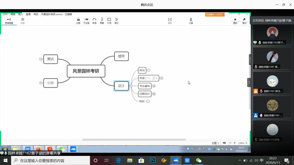 6月13、14晚,园林系通过腾讯会议分别举行了园林专业、林学和园艺专业二场2020年考研经验交流分享会。园林系辅导员高丽珠、欧成川以及园林系部分学生参加了会议。会议由园林系辅助郑增山主持进行。