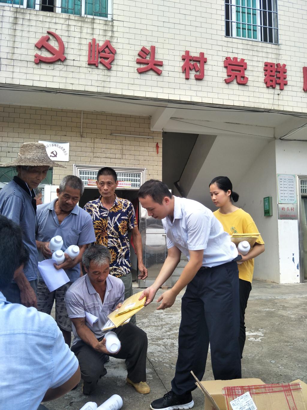 农村科技特派员在岭头村推广绿色植保技术(发放粘虫板)