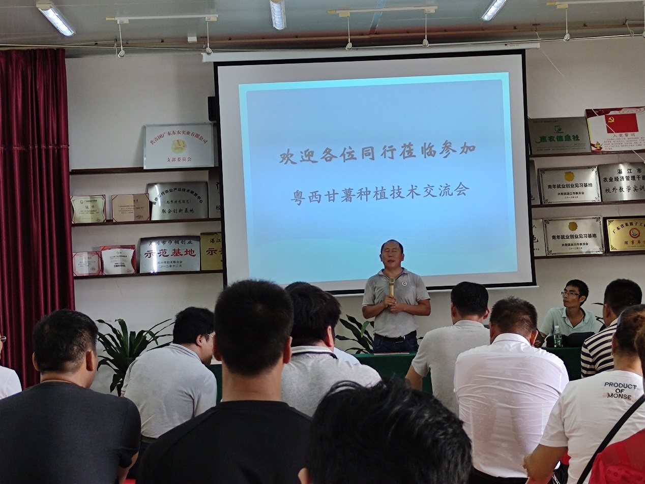与湛江市农科院旱作所联合主办第一届粤西甘薯种植技术交流会,参会人员由从事甘薯育种与种植推广的科技人员及来自粤西各甘薯种植区的种植大户组成,人数达60多人,台湾女优