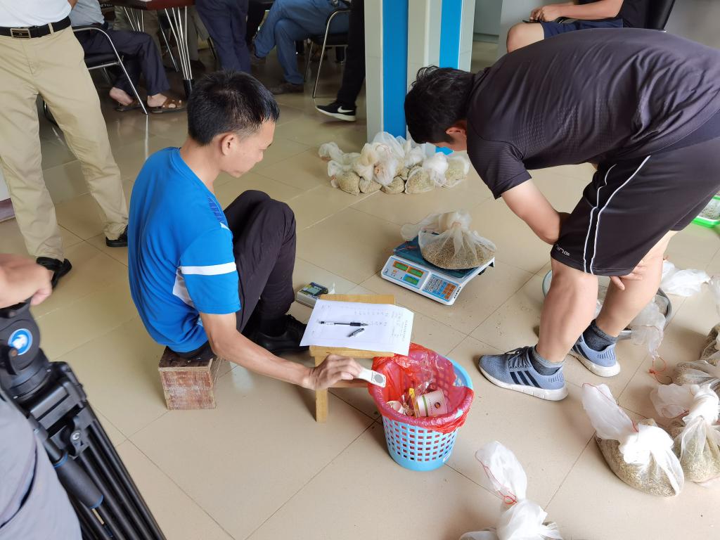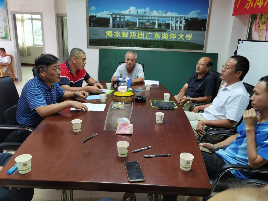 陈进军院长、作物学科带头人郑殿峰教授和沈雪峰副教授、赵黎明副教授见证了整个测产过程,并在会后与该基地负责人陈日胜讲座教授和测产专家组对如何深入研究和加快推广海水稻渔立体循环种养模式进行了探讨。