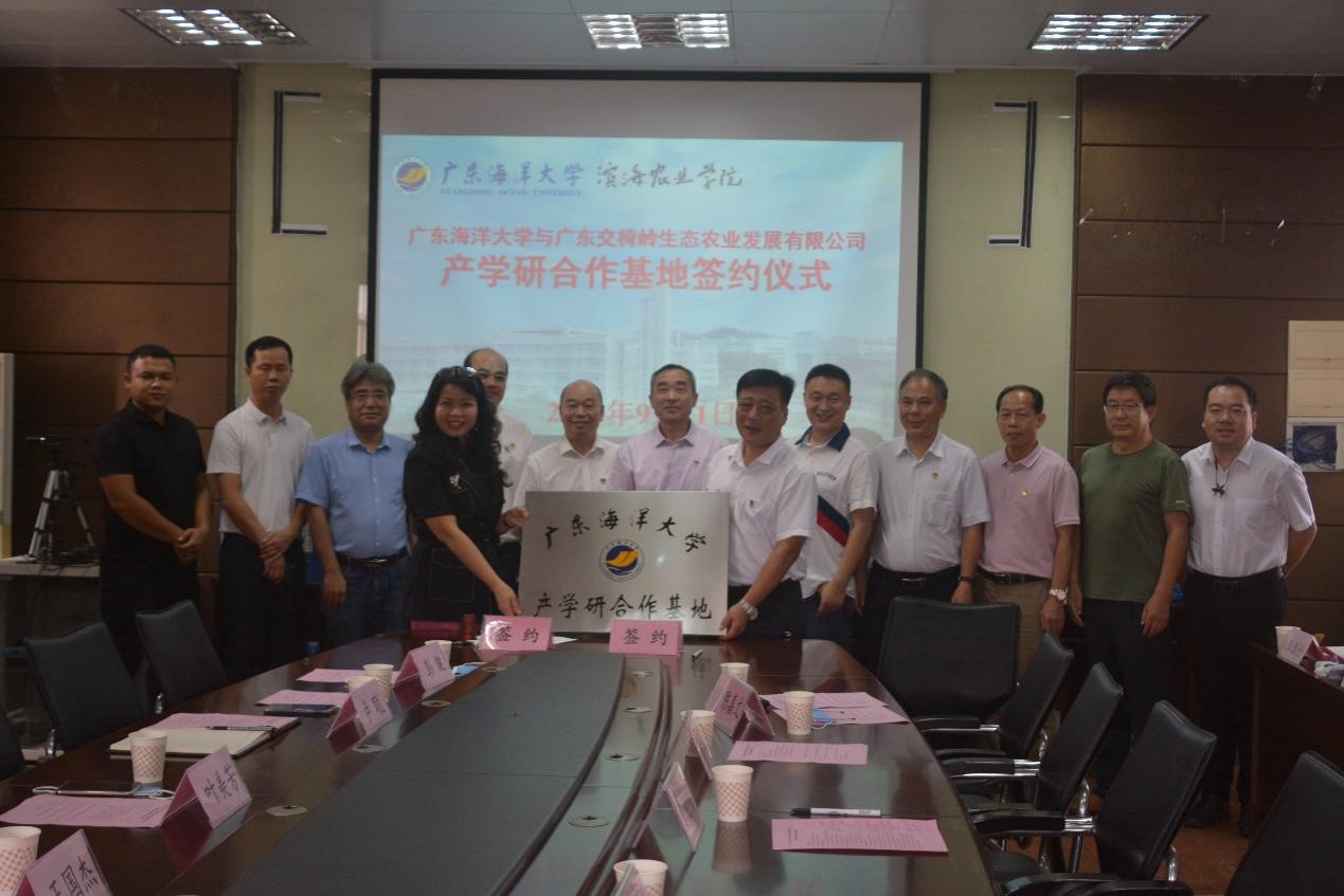 党委书记曹俊明教授、科技处处长鲁义善教授,湛江市农业农村局发展规划与乡村产业发展科科长王国杰、湛江市麻章区农业农村与水务局副局长卢聪、湛江市麻章区湖光镇党委副书记邓利,广东交椅岭生态农业发展有限公司总经理叶美芳、副总经彭健、副总经理彭越以及台湾女优