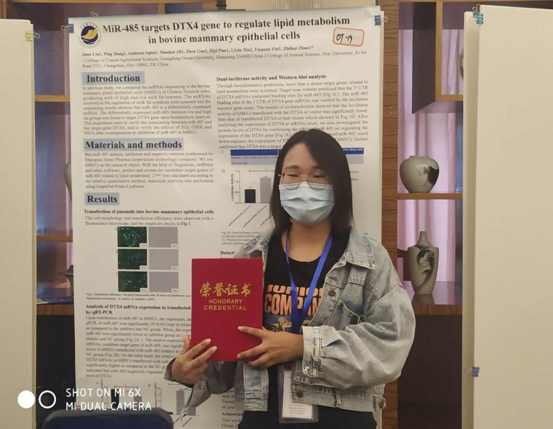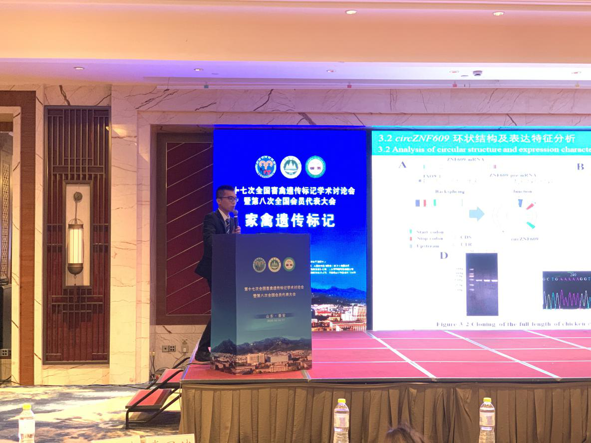 学生冷奇颖、Collins Amponsah Asiamah、高振等硕士受邀做分组报告,其中冷奇颖硕士题目为“鸡circZNF609编码能力检测及细胞功能分析”的会议论文获得优秀会议论文奖;刘娟硕士获得了第十七次全国畜禽遗传标记学术讨论会优秀墙报奖。会议期间,赵志辉教授积极与其他专家学者进行学术交流及探讨,就开展科研合作、平台共享等事宜进行了广泛交流。