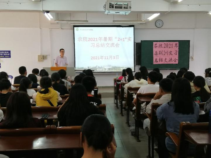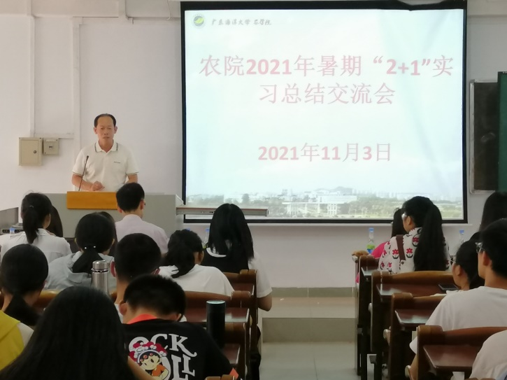 在主楼313室举行“2021年暑期‘2+1’实习总结交流会”。学院党委副书记陈嘉文、辅导员老师翟周、林主华、朱晓清以及大二、大一近110名学生参加了交流会。会议由动科卓越1201班魏威振同学主持。