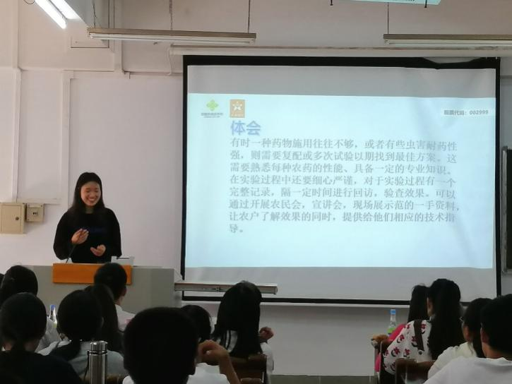 会上,林学1191刘婷婷、农学1192廖慧琳、动医1192陈媚君、动医1193苏利鸿、动科1182丘德煌、动科1182孙锦锋等六名同学分别谈了各自在不同单位开展实习的所学、所获、所悟,分享了实习过程中的“苦”与“乐”,总结出“实践、学习、生活、做人”的现实经验。