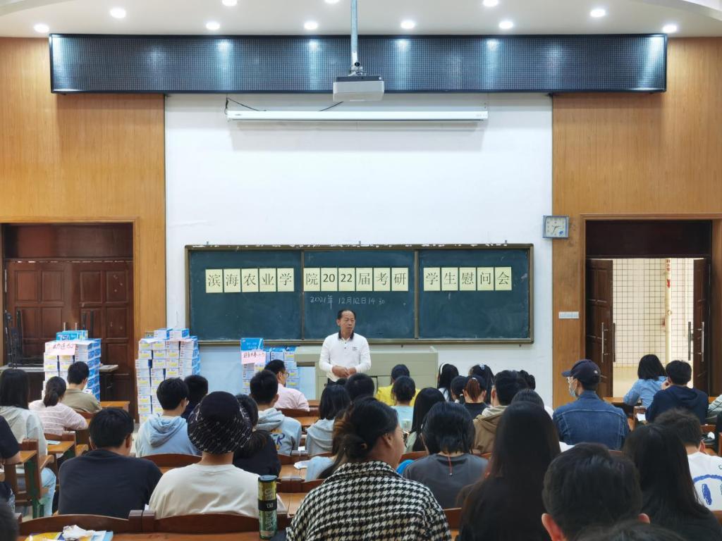 在兴农楼109举办了2022届考研学生慰问活动。学院党委陈嘉文副书记,各系辅导员及考研学生代表近150人参加了此次活动。