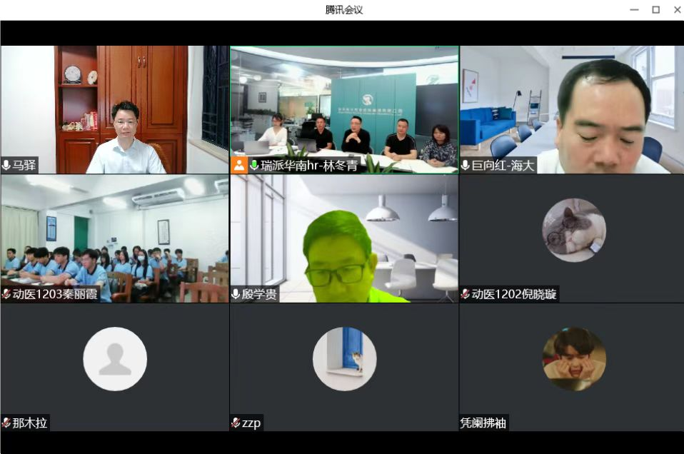 祝贺瑞派班成立,对这种新的人才培养模式给予充分肯定,对瑞派公司多年来的合作和支持表达了谢意,对瑞派班同学寄予殷切希望,鼓励同学们珍惜机会、提高自己、早日成为新时代兽医合格人才。张惠利代表瑞派公司表达了对瑞派班的祝愿和进一步深化校企合作、培养高素质兽医人才的愿望,鼓励同学们早日成才。双方其他领导和教师也发言表示,要以瑞派班为基础,进一步推进产教融合,为宠物医疗行业培养具有扎实的动物医学专业基础知识,实践能力强、勇创新、敢创业的高水平应用型人才。学生代表表达了发奋学习、早日成为合格专业人才的决心。