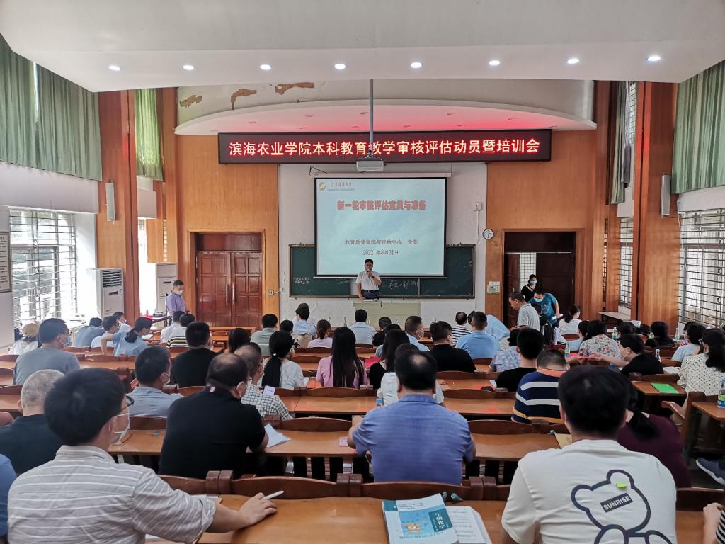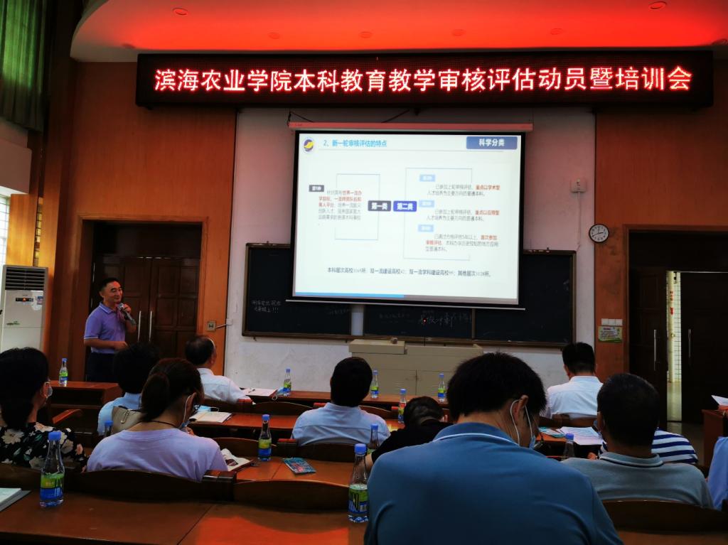 在兴农楼109室召开本科教育教学审核评估动员暨培训会,会议由郑殿峰院长主持,邀请了学校质量监控与评估中心黄晋主任作培训报告,全院领导和教职工参加了会议。