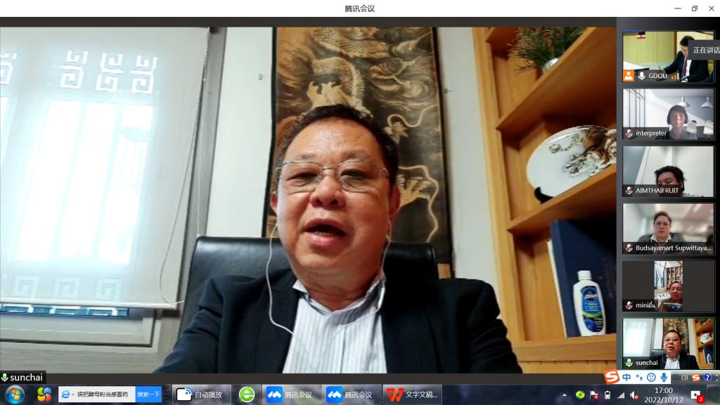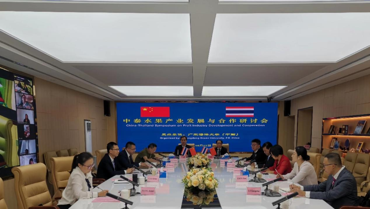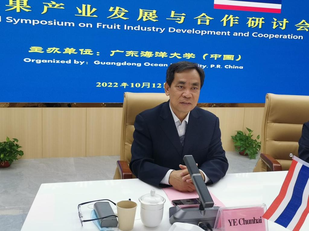 为促进中泰水果产业中泰水果产业发展与合作,共享“一带一路”建设成果,在湛江市商务局指导下,由我校主办、滨海农学院承办的“中泰水果产业发展与合作研讨会”2022年10月12日下午在霞山校区国际会议室热烈举行。湛江市商务局副局长黄华兵等莅临指导,会议邀请了泰中国际企业家联合总会主席叶均廷、泰国新鲜水果贸易商和出口商协会会长吴楚林等领衔的泰国企业家代表,及我校原校长叶春海教授、中国热带科学院南亚所所长杜丽清教授、岭南师范学院生科院院长刘锴栋教授 、国际交流与合作处处长陈进军教授及台湾女优
