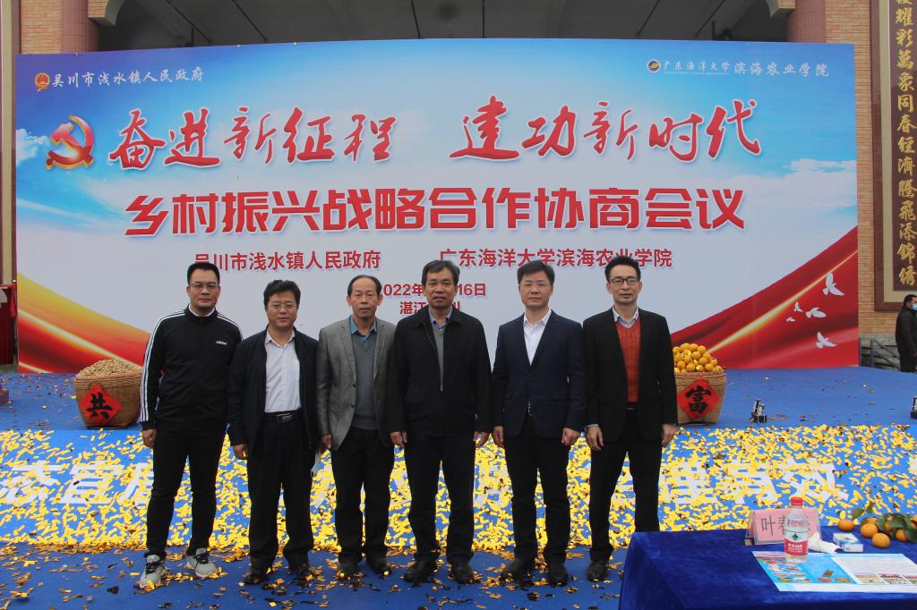 党委副书记陈嘉文、副院长马驿教授及相关老师一行6人参加了会议,吴川市委副书记(代市长)刘伟、市委常委(副市长)谭斐、吴川市乡村振兴局局长林明、浅水镇党委书记叶剑平、浅水镇党委副书记(镇长)郭卓明、浅水镇人大主席柯亚周出席了会议。