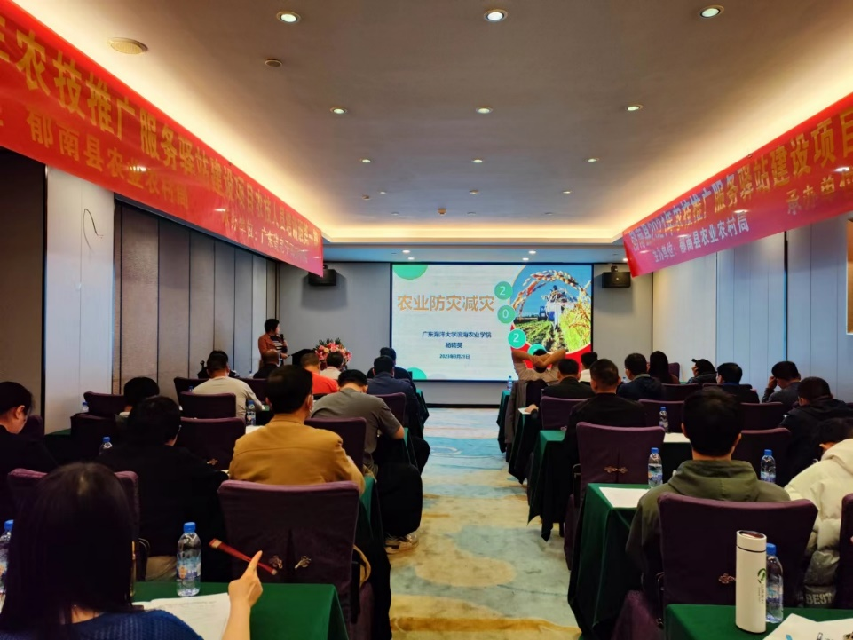 为提高农技推广人员的综合素质,全面优化基层农技推广人员的专业知识和服务能力,20233月31日上午,园艺系杨转英主任和王廷芹副教授应邀参加了郁南县农业农村局主办的广东省郁南县2021年农技推广服务驿站建设项目农技人员培训班,参会人员近100名。杨转英主任做了“农业防灾减灾”方面的培训,主要从洪涝、干旱、低温冷害、霜冻、冰雹、风害等对作物造成的影响进行分析,针对不同灾害提出不同的防灾减灾措施;王廷芹副教授对“农技平台应用及农技驿站建设”专题进行培训,从农技平台建设的背景、中国农技平台和广东农技平台的应用、农技平台的作用以及农技驿站建设模块等方面做了详细介绍。本次培训得到郁南县农技推广人员的肯定和赞赏,会后,双方就农技平台建设应用和相关灾害预防等问题进行了深入讨论。