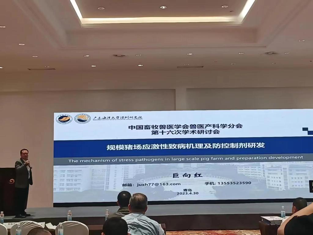 动物医学系主任巨向红教授做了题为“规模猪场应激性致病机理及防控制剂研究进展”的学术报告。报告从规模猪场应激性风险因素、主要危害及致病机制等方面入手,结合团队在兽用海洋药物研发方面的最新进展,提出了科学的应对措施,并展望了未来发展趋势。报告得到了在场专家学者的高度认可,对提升我校畜牧兽医及相关学科的学术影响力有积极作用。另据悉,该学会第十七次学术研讨会将于2024年在湛江召开,并由我校承办。