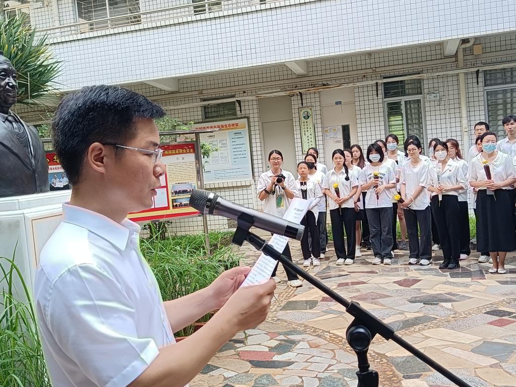 值袁隆平院士逝世两周年之际,为了激励广大师生学农、爱农、兴农、强农,传承袁隆平精神,表达对袁隆平院士的缅怀之情,为国家乡村振兴、国家粮食安全战略做出更大贡献。2023年5月22日上午,学院在兴农楼我校特聘院士袁隆平铜像前举行学习袁隆平精神暨追思活动。学院领导和师生代表120余人参加,学院党委副书记陈嘉文主持。