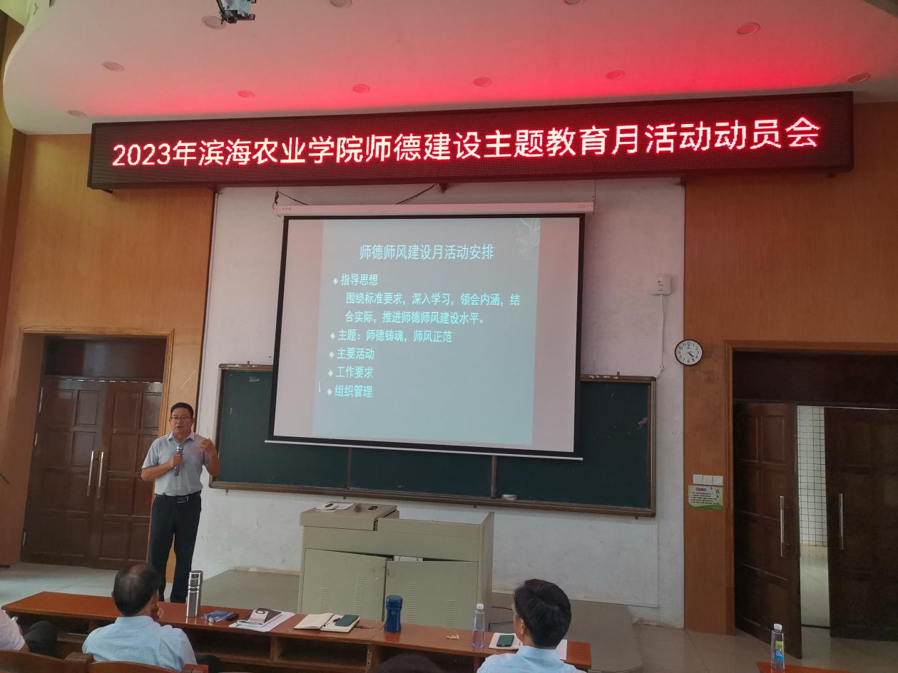 在兴农楼109多媒体室召开2023年师德建设主题教育月活动动员会,会议由郑殿峰院长主持。
