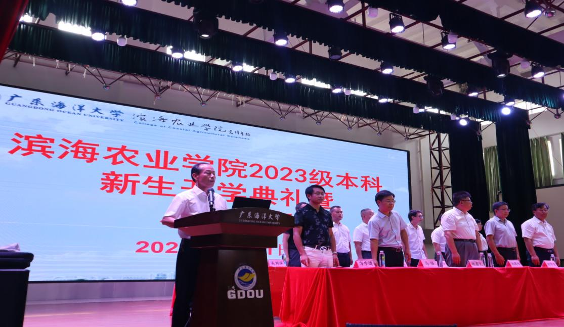 2023级动医1233班的黄浩翔作为新生代表发言。他坦言,作为新时代年轻人,我们应秉承“广学明德,海纳厚为”的校训,发扬“坚忍不拔、自强不息”海大精神,向着“能安心、能吃苦、能创业”的成长成才目标迈进。他承诺,大学四年,必将满怀梦想,向新的目标发起冲锋,不惧困难与挑战,在农院书写一段段属于我们的辉煌!