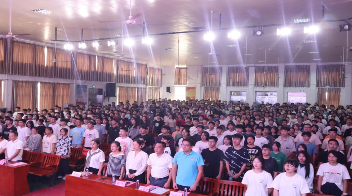 2023级本科生新生开学典礼暨入学教育大会在湖光校区东区小礼堂举行。学院领导班子、系室(中心)正副主任、辅导员、新生班主任、教师代表、在校生代表、2023级本科生全体新生参加大会,会议由学院党委副书记陈嘉文主持。