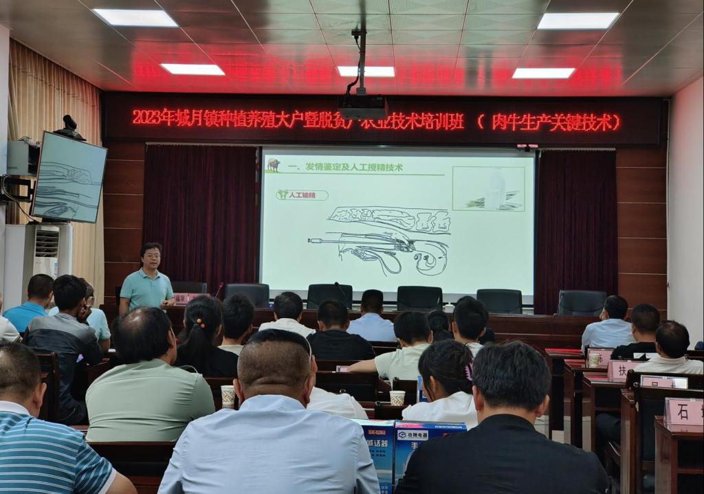 培训会现场科技特派员通过信息平台演示、农户提问现场解答环节,讲授了针对城月镇适合发展何种产业、如何发展特色种植养殖业、应如何提高种养技能达到提高经济效益效果等内容。培训系列课程内容包括甘薯、水稻、火龙果种植及肉牛养殖,共计四场。