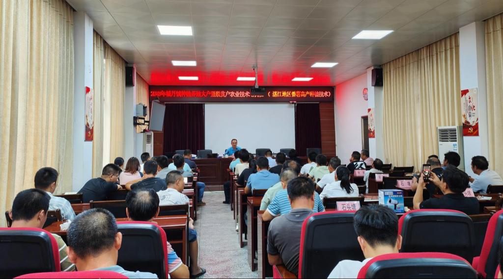 尹福泉老师根据遂溪县城月镇种养殖技术需求,邀请学院朱宏波、黄永相及杨转英等3位老师,共同在城月镇人民政府一楼会议室举办了4场种植、养殖农业技术培训系列课程。培训课程由驻镇工作队队长、镇委副书记卢兆明主持,城月镇人民政府领导、驻镇帮镇扶村工作队成员、各村干部、脱贫户、种植养殖大户等60余人参加培训。