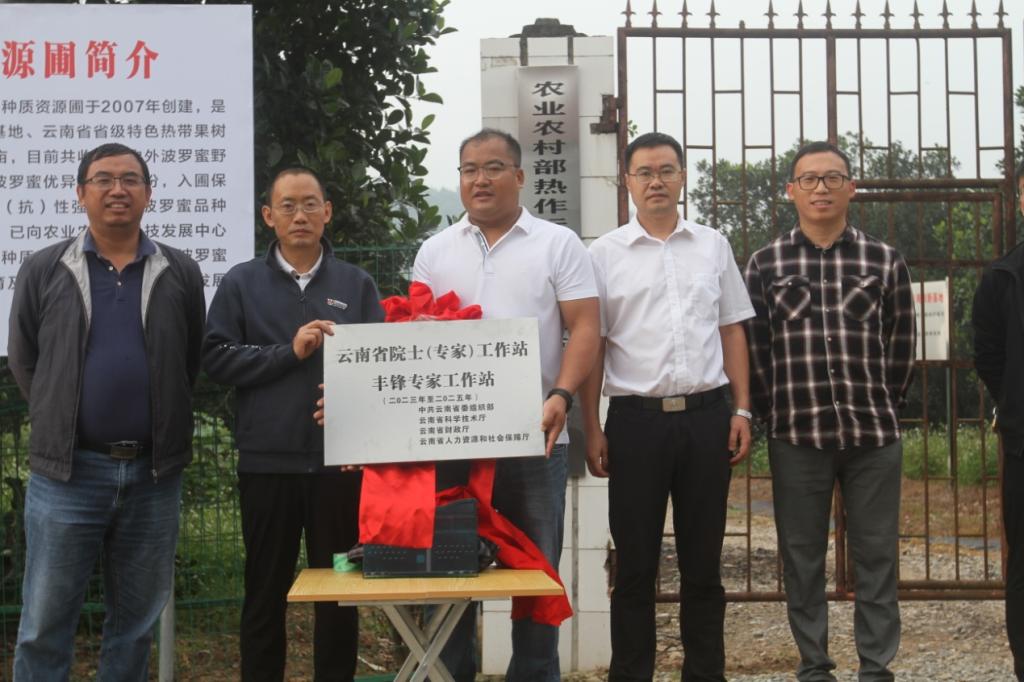 园艺系丰锋、李国鹏一行到云南省红河热带农业科学研究所交流学习,在所党委书记、所长丰玉云和“云南省丰锋专家工作站”项目负责人岳建伟等领导的陪同下,首先举行“云南省丰锋专家工作站”揭牌仪式,然后实地参观了研究所菠萝蜜、香蕉、柚子、油梨、橡胶等种质资源圃和试验基地,同时到南溪、蚂蝗堡等菠萝蜜种植基地调研,详细了解种植户面临的技术问题并给出针对性的解决方案。随后,双方开展交流座谈。