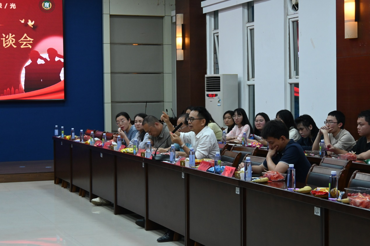 党委副书记陈嘉文、学院兼职武装干部董海芹、各系辅导员老师,退役大学生、在校各系学生代表共70余人参加本次座谈会。会议由退役学生服务队班长黎永乐主持。