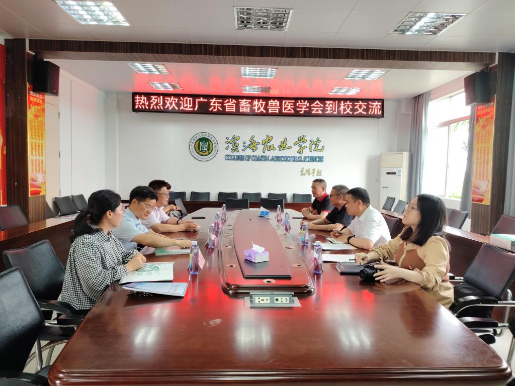 对邱深本一行表示欢迎,马驿院长介绍了学院和畜牧兽医学科发展的历程及现状。付杰就学会开展的服务和负责的工作进行了介绍,重点在畜牧业标准化技术培训、第三届广东省宠物行业职业技能竞赛办赛、畜牧兽医相关职业技能证书培训等方面进行介绍。双方在人才培养、科学研究等方面进行了深入交流。