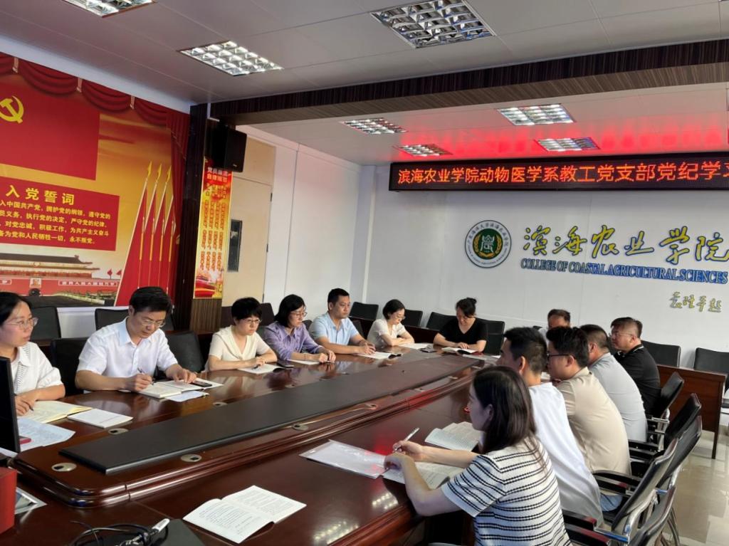 2024年6月3日下午,动物医学系教工党支部在兴农楼419召开党纪学习教育专题讨论会。会议由党支部书记丁月霞主持,支部全体党员参加了会议。