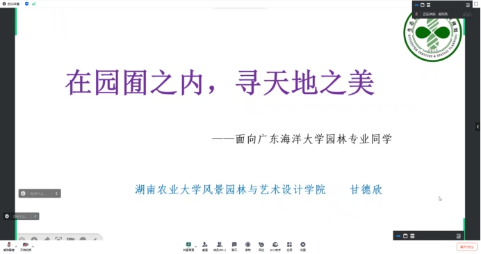 园林系邀请,做客园林大讲堂,通过线上形式作了题为“在园囿之内,寻天地之美”的主题讲座。园林系师生共计约250人参加讲座,讲座由园林系主任吴刘萍教授主持。