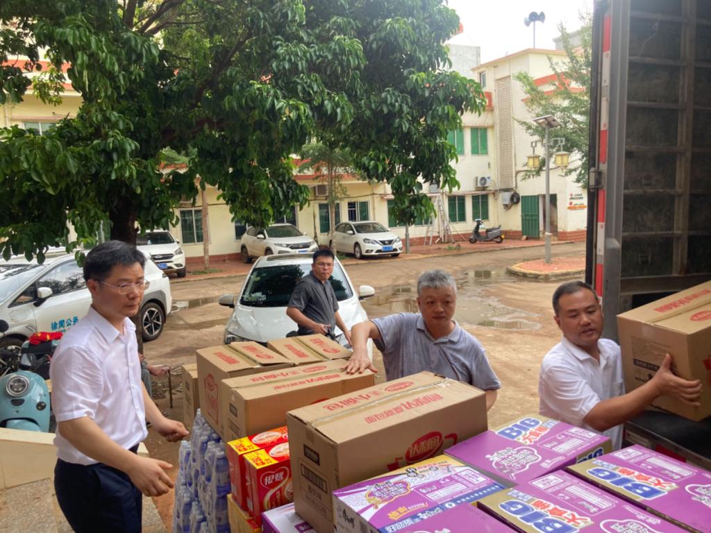 院长马驿、科学技术部副部长刘劲科、学院党委副书记王继全、副院长沈雪峰、学院党政办主任杨铁军和科学技术部知识产权与成果科科长丁晨组成的慰问组,带着满车生活急需物资赶赴徐闻县西连镇。慰问组克服路途远、高速封闭、国道拥堵等困难,在我校化学与环境学院党委书记、“双百行动”驻徐闻县服务队队长何国明和徐闻县教育局教师发展中心、“双百行动”工作专班联络员陈华丽的陪同下,将生活物资及时送到了受灾乡镇群众手中。