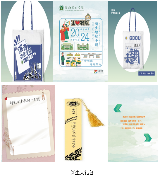 新生领航手册》,一本充满诗意与温情的指南,学院易班带领班辅助团队用文字编织成一幅幅美丽的画卷,引领着新生们在这幅画卷中漫步、探索、成长。文创袋以海洋蓝为主题诉说着我校与海洋的渊源,“未来可期”是学校对莘莘学子的祝愿,“大有可为”是袁老对农院学子的期望。一枚书签,让书签陪伴新生们汲取知识,让知识的甘泉灌溉大地。每一件文创都有属于它们的故事,每一件礼物的背后都是农院对新生们最真诚的期望与祝福,愿新生们未来可期,大有可为,带着努力和幸运乘风破浪,扬帆起航。