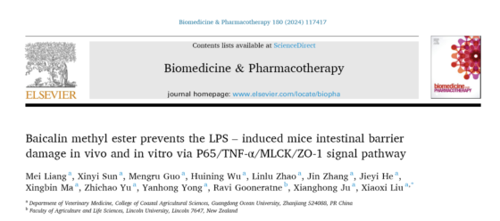 近日,国际知名期刊Biomedicine & Pharmacotherapy(中科院二区,Q1分区TOP期刊,影响因子6.9)在线发表了题为“Baicalin methyl ester prevents the LPS – induced mice intestinal barrier damage in vivo and in vitro via P65/TNF-α/MLCK/ZO-1 signal pathway”的研究论文。该论文第一作者为台湾女优