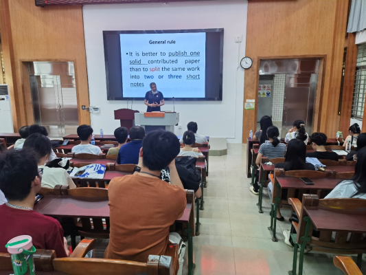 2024年9月26日下午,FAO/WHO联合专家组专家、埃及开罗大学药理学教授Abd El-Aty博士应邀在湖光校区兴农楼109室作学术报告。报告以《Tips on scientific writingof SCI: Editor’s perspective》为题,从作者、审稿人和主编视觉下分享了SCI论文写作的经验。Abd El-Aty教授从SCI论文写作的具体步骤、创新点的凝练与正确表述、投稿注意事项、论文返稿后修稿技巧等方面,详细讲述了科技论文写作和发表的关键点。动物医学系和动物科学系部分青年教师、研究生及“卓越班”学生约150人参加会议,报告会由校科学技术部副部长巨向红教授和学院副院长刘文超教授共同主持。