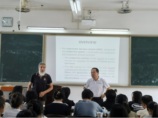 在校交流期间,Abd El-Aty教授还参加了“海外名师”进课堂活动,与巨向红教授合作,为2023级动物医学卓越班、动物科学卓越班本科生讲授了《自主神经系统》课程。