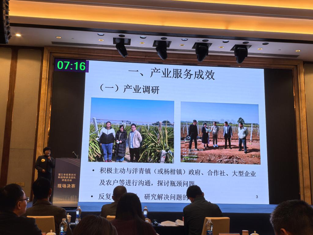 1月16日,由市政府指导,市科技局主办,市“百千万工程”指挥部办公室、市委宣传部、市农业农村局协办,市科技创新促进会承办的湛江市优秀农村科技特派员团队评选活动现场决赛在湛江民大喜来登酒店举行。湛江市人民政府副秘书长刘志红、湛江市科学技术局局长江强等领导出席,专家组、参赛单位代表、新一轮科技特派员团队负责人及成员约200人参加。