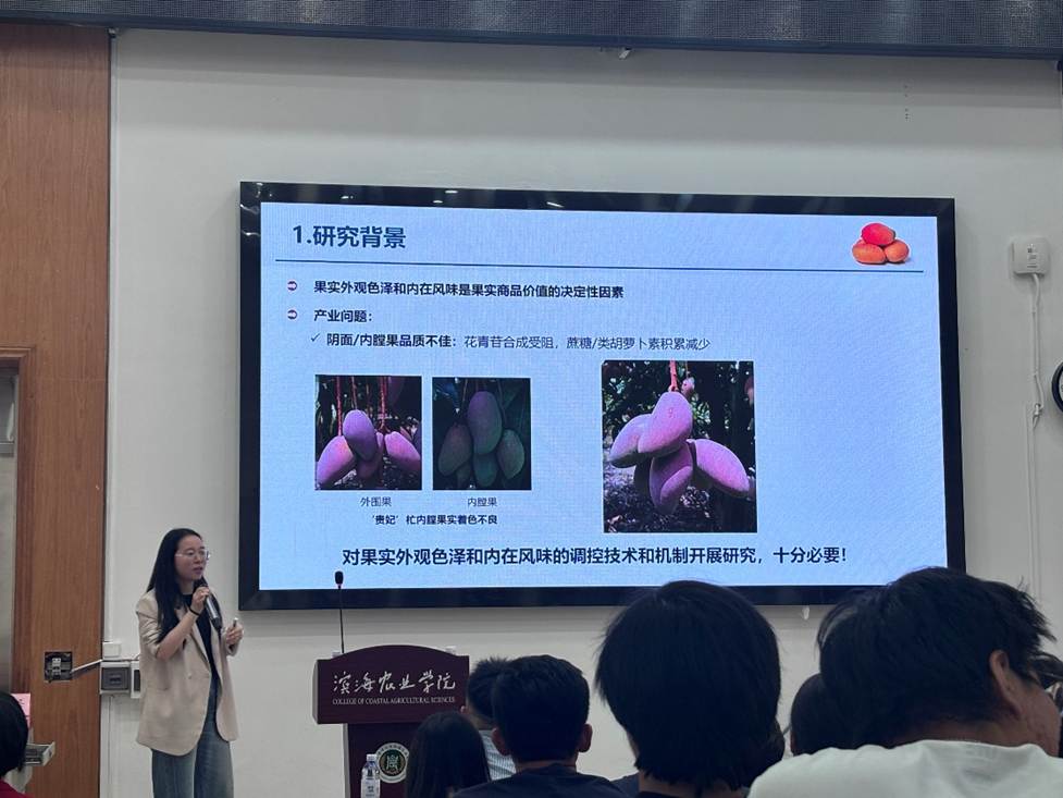邀请,海南大学钱敏杰教授与浙江大学倪隽蓓副研究员在湖光校区兴农楼109室作学术报告。报告会由院党委副书记王继全主持,园艺系教师、研究生及本科生代表100余人参会。