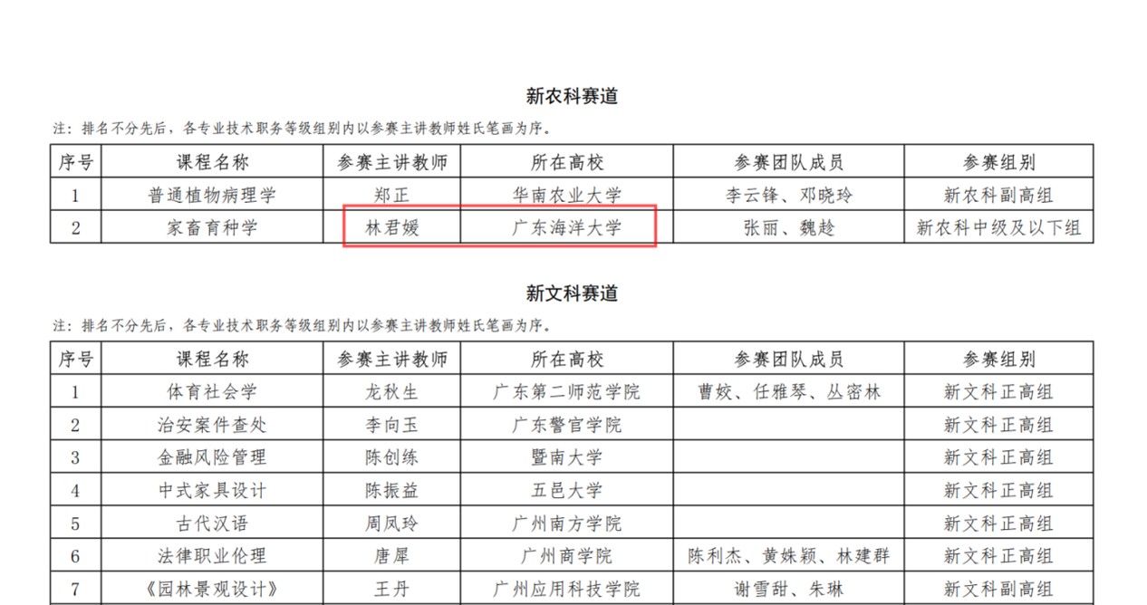 动物科学系教师林君媛主讲的《家畜育种学》课程荣获新农科赛道中级组省级优秀奖。