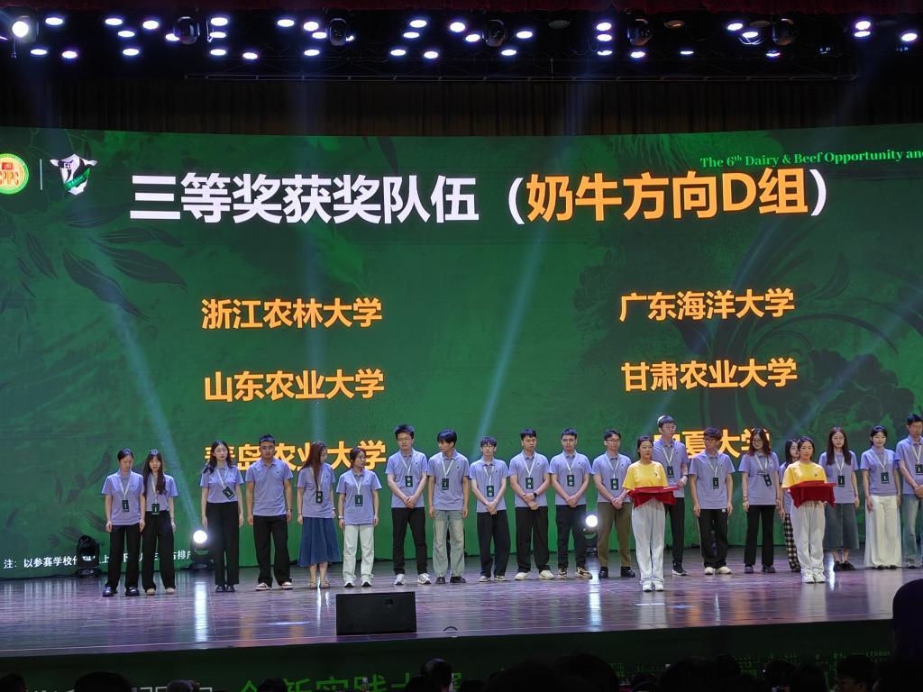 肉牛队(李涛、郑隆清、廖洁、苏梦容;指导教师:马健、尹福泉)和奶牛队(周焱龙、区钊明、劳蔼鸿、陈冠宜;指导教师:杜春梅、于海滨)分别荣获全国二等奖和三等奖。