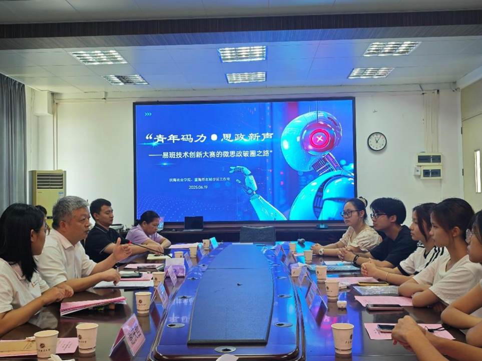 和董海芹名辅导员工作室承办的2025年第五期辅导员沙龙在湖光校区兴农楼419会议室圆满举行。本期沙龙以“青年码力·思政新声——易班技术创新大赛的微思政破圈之路”为主题,通过案例展演、经验分享和专题研讨,为辅导员队伍提供了易班技术创新与网络微思政育人的新思路。活动由董海芹主持,各学院30余名师生参与。