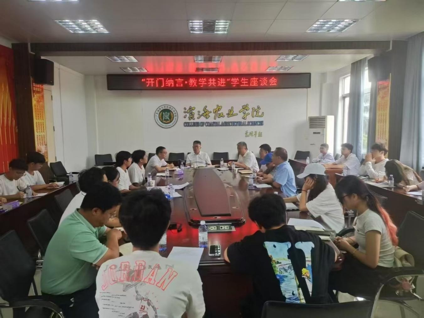 在兴农楼419会议室举行 “开门纳言·教学共进”学生座谈会。学院党委书记郑殿峰、党委副书记王继全、副院长刘文超出席会议,各系主任和非毕业生代表等27人参加了会议,会议由郑殿峰主持。