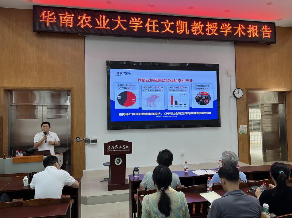 邀请,华南农业大学任文凯教授在湖光校区兴农楼109室作了题为《猪免疫特征的氨基酸代谢基础》的学术报告。报告会由副院长刘文超教授主持,畜牧学科赵志辉教授、甘尚权教授、青年教师及研究生100余人参会。
