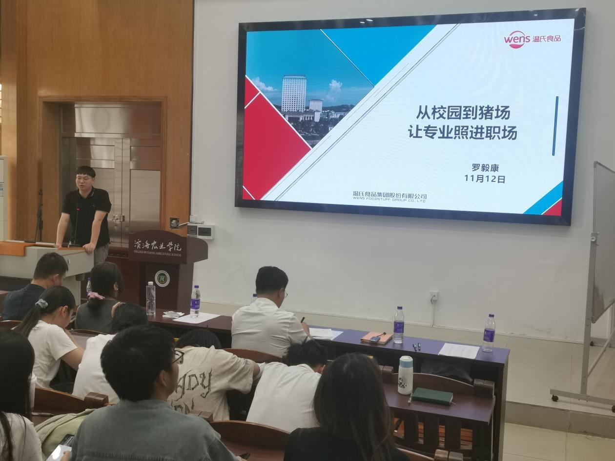 动物科学专业卓越1161班毕业生、温氏集团湛茂公司技术主任罗毅康以《从校园到猪场,让专业照进职场》为题,讲述了自己从校园走向规模化养殖一线的成长历程。他分享了在温氏集团工作期间,将动物科学专业知识应用于猪场育种、疫病防控、养殖管理的实践经验。鼓励在校学子珍惜实践机会,将专业所学与产业需求紧密结合,在基层岗位上实现价值成长。