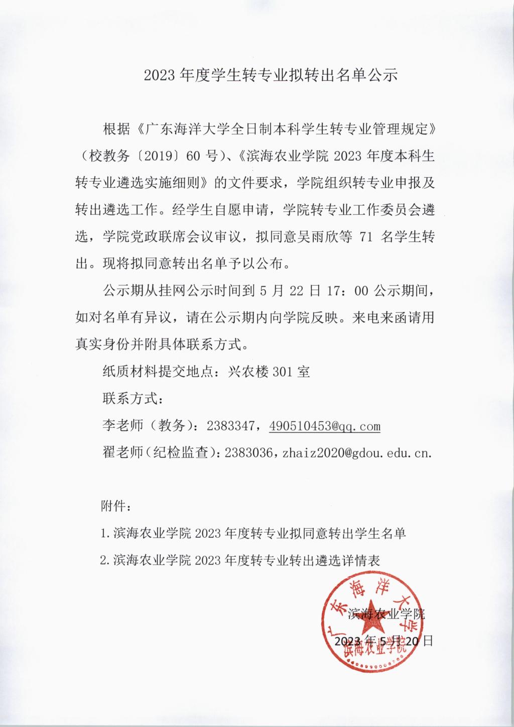 关于公布2023年度台湾女优 报名转专业学生名单的通知